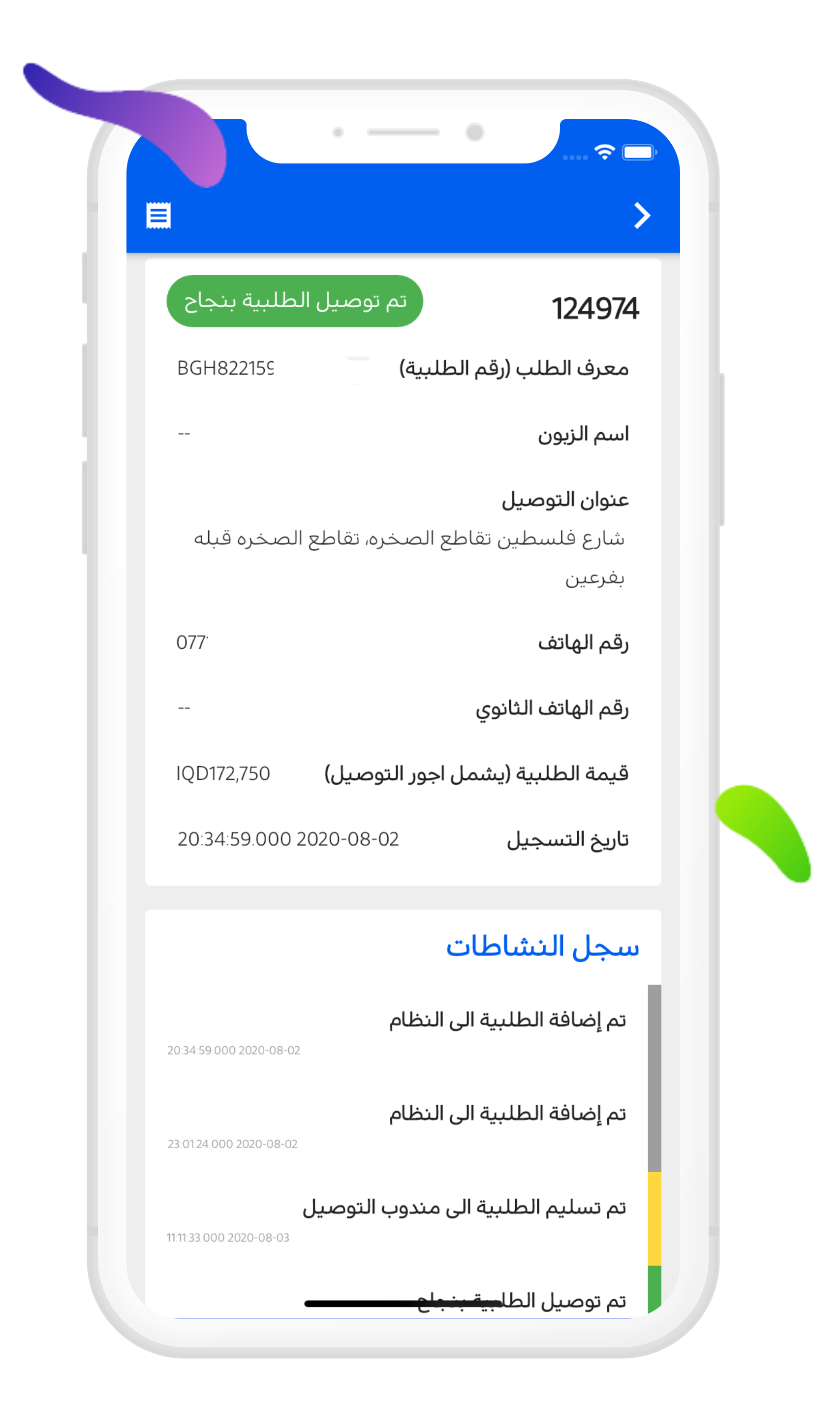 التطبيق حيدزلك اشعارات اول بأول حتى تكون على علم بأوردراتك الي طلعت والي وصلت